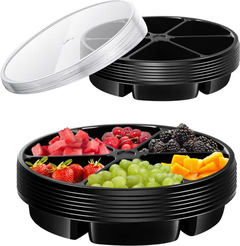 El paquete incluye: recibirás 10 bandejas redondas de plástico para aperitivos con tapas, cada una consta de 6 compartimentos divididos, puede contener una variedad de alimentos, la bandeja de plástico dividida es suficiente para satisfacer tus necesidades diarias de uso y fiesta Material de calidad: estas bandejas redondas de plástico para servir están hechas de material plástico PET de calidad, estos platos y bandejas de frutas son estables en estructura, no se rompen ni deforman fácilmente, útiles y confiables para usarlos repetidamente Tamaño adecuado para usar: cada bandeja redonda seccional mide aproximadamente 10 pulgadas de diámetro, 1.9 pulgadas de alto, y consta de 6 secciones divididas, lo que te permite organizar y colocar diferentes tipos de alimentos, conveniente y práctico Bandeja dividida con tapa: la bandeja de plástico para verduras viene con tapas, para mantener las moscas lejos de tu comida, proteger bien tu comida, con 6 compartimentos para almacenar varios alimentos, también puede almacenar artículos pequeños, como botones, alfileres, manualidades y mucho más Amplias aplicaciones: las bandejas de compartimento con tapa son adecuadas para almacenar varios alimentos, como verduras, frutas, aperitivos, dulces, dulces, postres, papas fritas, para reuniones familiares, fiestas de vacaciones, fiestas de cumpleaños, camping, picnics, viajes y otras actividades al aire libre