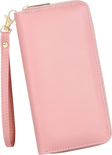 Badiya Cartera de cuero para mujer, tarjetero de crédito, bloqueo RFID, cremallera alrededor del teléfono, bolso de mano