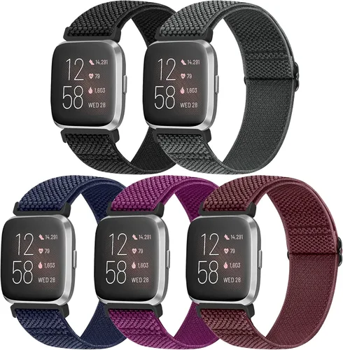 Bandas elásticas compatibles con Fitbit Versa 2VersaVersa LiteVersa Edición Especial, bandas trenzadas de nailon ajustables de repuesto para mujeres