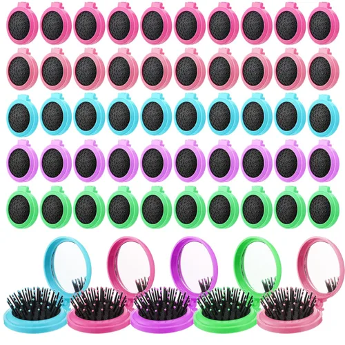 Barydat 50 piezas de cepillo de pelo plegable de viaje con espejo, cepillo de pelo pequeño portátil a granel, mini peines compactos coloridos de