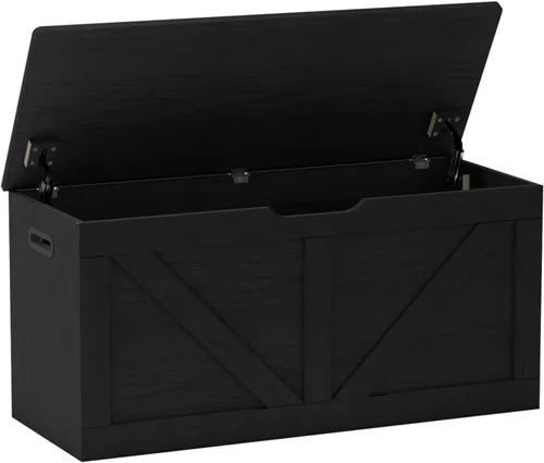 Timberer Baúl de almacenamiento de 39.4 pulgadas, banco de almacenamiento de madera, baúl de almacenamiento grande con 2 bisagras de seguridad,