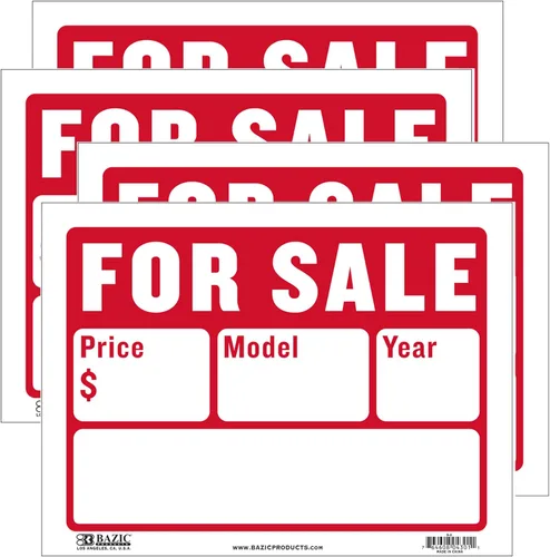 BAZIC - Letrero de venta de automóviles de 9 x 12 pulgadas (2 líneas), número de teléfono del año del modelo, señalización interior de autos,