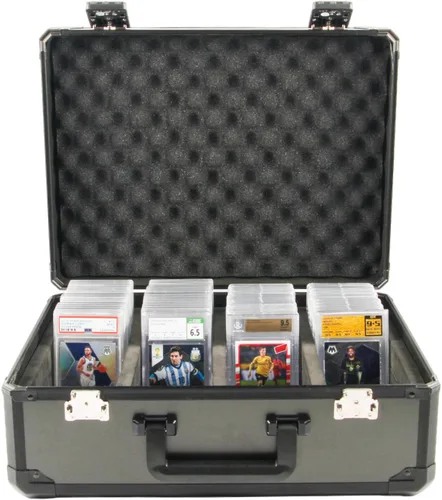 El estuche para tarjetas Zitech Sportts está diseñado para asegurar tus losas contra ladrones. Mantén tus losas de tarjetas clasificadas organizadas, protegidas y seguras Nuestra caja de almacenamiento de tarjetas comerciales está hecha con marco de aluminio y panel compuesto de aluminio que la hacen incombustible y resistente a la humedad. La funda para tarjetas graduada se adapta a todas las tarjetas con calificación PSA, BGS, SGC y GMA, también se adapta a cualquier tamaño de cargador superior y soporte magnético de un solo toque Se adapta a 160 tarjetas graduadas PSA (40 cada fila). Se adapta a 120 tarjetas graduadas BGS (30 cada fila). Se adapta a 560 cargadores superiores (140 cada fila)