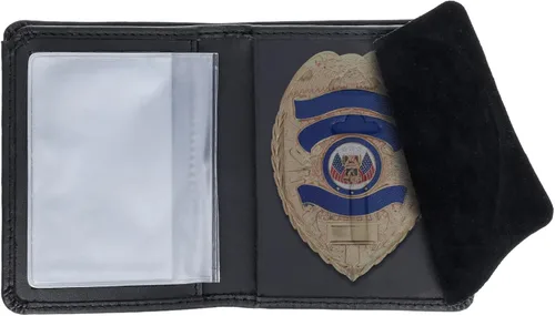 Cartera con soporte para tarjetas de policía: incluye una ranura para credenciales de identificación; un compartimento para efectivo, una solapa de protección de insignia de gamuza y soporte de corte para insignia empotrada Soporte para tarjetas de policía extraídas: diseñado para llevar insignias de policía y credenciales de identificación emitidas por el departamento para oficiales mientras están de servicio; el recorte de la insignia mantiene el perfil general del portatarjetas de policía mínimo y compacto; el accesorio de insignia es un estilo de pasador trasero de clip por lo que no se requieren tornillos Material de cuero auténtico: esta cartera para tarjetas de policía cuenta con una construcción fuerte y resistente con costuras reforzadas y un cuerpo de cuero de calibre pesado; el soporte para insignias se relajará con el tiempo con el uso ya que se amolda a tus hábitos de transporte, pero nunca renunciará a su integridad y estructura Especificaciones: Dimensiones: 4.5 x 3.5 x 1 pulgadas; tamaño máximo de la tarjeta: 2.75 x 4 pulgadas; tamaño máximo de la insignia: 2.25 x 3.5 pulgadas; color: negro; materiales: cuero; fabricado en EE. UU.; el accesorio de la insignia es clip-back, no requiere tornillos Nota: la cartera con soporte para tarjetas no viene con insignia
