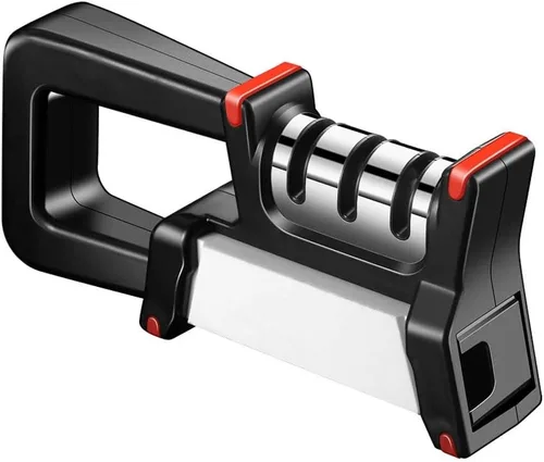 Product name: knife sharpenerProduct color: blackMaterial: ABS + stainless steelGrinding wheel material: diamond + tungsten steel + ceramicProduct size: 23*4.5*10.3cmWeight: 320gScope of application: kitchen, restaurant, camping and other environments, suitable for rapid grinding of various stainless steel knives.Not applicable: ceramic knives, other serrated tools.Package Included:1* Knife SharpenerThank you for your support, we will strive to do better. If you have any questions, please contact us in time, we will reply to you within 24 hours.
