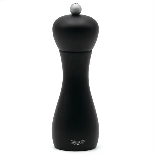 El mecanismo del molinillo de pimienta está hecho de acero endurecido Doble fila de dientes molidos, sostiene y guía granos de pimienta para una molienda perfecta Cuerpo de molino de madera de haya, acabado lacado negro El revestimiento de zinc protege el sistema de la oxidación, asegurando el afilado y la resistencia al desgaste; limpiar a mano con un paño suave Fabricado en Italia