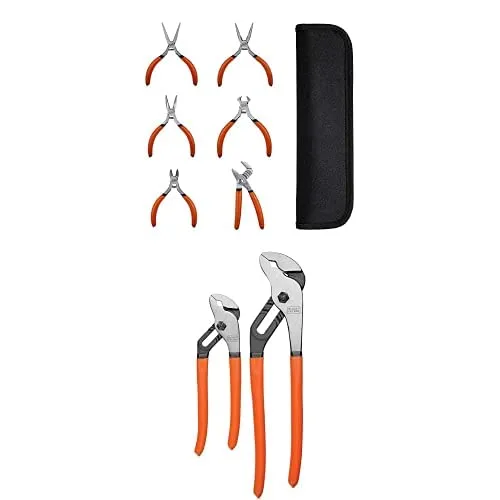 BLACK+DECKER Juego de alicates, mini, 6 piezas, fácil de doblar y cortar cables (BDHT84003) y alicates BLACK+DECKER para juntas deslizantes, paquete