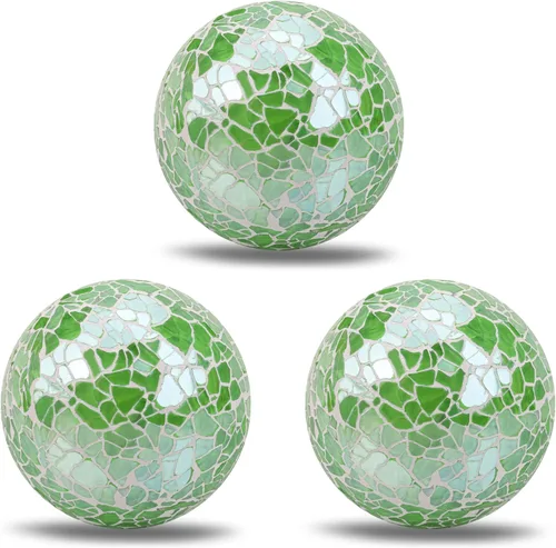 Bola decorativa de mosaico de 2.6 pulgadas, 3 piezas, esfera sólida de vidrio para jarrones, mesas de café, accesorios de fiesta, decoración de Verde