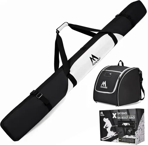 La bolsa de esquí Hsmihair y bolsa para botas, hecha de poliéster 600D resistente, ofrece protección resistente al agua y un interior acolchado para mantener tu equipo seguro. Tiene capacidad para esquís de hasta 78.7 in y botas hasta la talla US 13, con bolsillos adicionales para cascos y gafas. Con tres opciones de transporte, está diseñado para mayor comodidad y durabilidad durante el viaje.