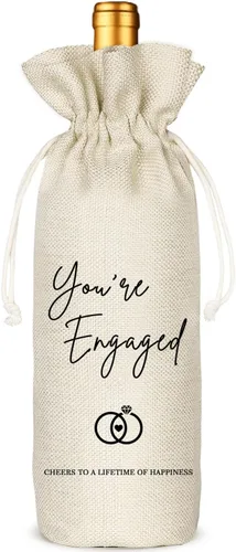 Material: 13.5 x 5.5 pulgadas, hecho de lino ecológico, duradero y reutilizable Puede contener una botella de vino de tamaño regular de 25.4 fl oz, botella de champán y botella de Borgoña. Adecuado para limpieza local con agua tibia y detergente suave, reutilizable y respetuoso con el medio ambiente. Bolsa de vino de anuncio de bebé. Estás comprometido, regalo de compromiso para parejas, regalo de compromiso personalizado, regalo de novia, regalo de pareja, decoración de fiesta de boda. Disponible en temas creativos como cumpleaños, graduaciones, jubilaciones, inauguración de la casa, nuevos trabajos, compromisos y bodas. Cada bolsa de vino cuenta con patrones únicos y mensajes sinceros, añadiendo un toque personal a tus fiestas o regalos