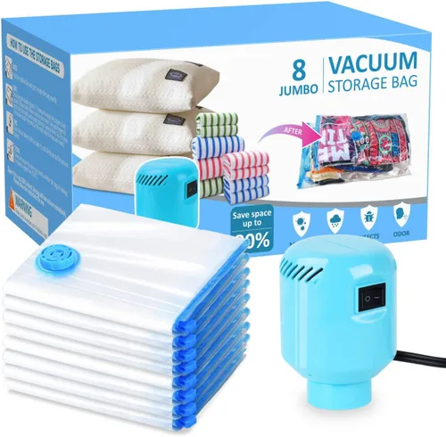 Bolsas de almacenamiento al vacío para mantas y edredones, 8 bolsas de sellado al vacío jumbo para ropa, mantas, ropa de cama con bomba eléctrica,