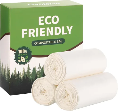 Bolsas de basura biodegradables con asa de 4 a 5 galones, bolsas de basura 100% compostables, bolsas de basura para cocina, baño, oficina y jardín a base de almidón