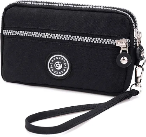 LassZone Bolso de nailon para mujer con tres cremalleras, cartera larga de embrague para teléfono móvil/tarjeta/efectivo/monedas/billetes