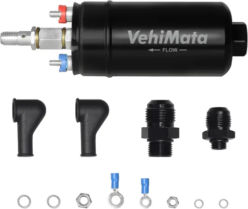 [Uso] La bomba de combustible en línea solo es compatible con el sistema EFI de 12 V CC [Media] La bomba de combustible eléctrica se adapta a gasolina, gas de bomba, gas de carrera, diésel, E85 y alcohol/etanol, etc [Parámetro] Flujo de prueba: 200 LPH (75PSI y 12V); 255 LPH (43 PSI y 12V); 300 LPH (43 PSI y 13.5V); Presión de funcionamiento: 75PSI; Rango de temperatura de funcionamiento: -68 °F - 194 °F [Nota] Para un rendimiento óptimo, monte la unidad debajo del tanque de combustible para permitir el suministro de combustible alimentado por gravedad [Instalación] Recomendamos otras piezas del sistema de combustible VehiMata para un rendimiento óptimo