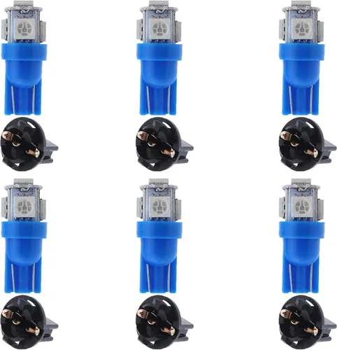 Especificación: El juego de bombillas T10 194 168 incluye 6 bombillas LED T10 DC 12V para tablero y 6 enchufes de bloqueo giratorio T10. Tipo de LED: chipsets LED 5-5050-SMD. Color de la luz LED: azul. Compatibilidad: la bombilla de panel de instrumentos T10 se integra fácilmente como reemplazo de los siguientes números de modelo de bombilla: T10, T15, 194, 168, 158, W5W 161B, 168, 168A, 168NA, 175, 192, 193, 194, 194B, 194G, 194NA, 194NA, 194NA, 194NA, 194NA. 4R, 282 1, 2825, etc. Amplio rango de aplicación: Las bombillas de luces de racimo de calibre T10 con enchufe de bloqueo giratorio son ideales para usar en indicadores de grupo de calibradores de camiones, velocímetros, odómetros y tacómetros. La bombilla LED T10 también se adapta bien a luces de mapa interior del automóvil, luces de cúpula, luces de tablero, luces de matrícula, luces de maletero, etc. Instalación este, simplemente plud y juego: reemplazo directo, no requiere cable, tiempo de respuesta de encendido o apagado muy rápido, y resistente a las vibraciones. Ahorro de energía, baja temperatura, bajo consumo de energía, vida útil, gran reemplazo de bombillas LED t10 para salpicadero. Aviso: Si el LED no se enciende, simplemente gírelo 180 grados (invierta la polaridad). Comprueba el manual de usuario antes de comprar. Garantía de 1 año.