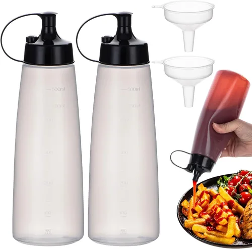 Plástico de calidad alimentaria prémium: las botellas dispensadoras de salsa picante están hechas de plástico de grado alimenticio, lo que garantiza que no contiene BPA ni olor, y prioriza la salud de ti y de tu familia. 100% reciclables, estas botellas pueden ayudarte a llevar un estilo de vida más económico y ecológico. Duraderas y recargables: fabricadas con plástico fuerte pero flexible, estas botellas de compresión no solo son fáciles de apretar y limpiar, sino que también te aseguran durabilidad y comodidad. Al tener una excelente resistencia a la compresión e impacto repetidos, las botellas pueden mantener su forma y resistencia después de ser reutilizadas muchas veces. Rellena las botellas con los embudos incluidos para simplificar la preparación de tu cocina. A prueba de fugas garantizada: cada botella viene con una tapa individual firmemente unida a la tapa. Las tapas y tapas bien construidas aseguran que el contenido de líquido se pueda sostener de forma segura, incluso cuando necesita agitar las botellas o cuando las botellas se vuelcan en el lateral. Esto evita cualquier molestia de fugas y mantiene tu cocina limpia. DISEÑO INTELIGENTE: Las salidas de las botellas son lo suficientemente anchas como para verter, suave y eficientemente, una gran cantidad de líquido una vez. Equipadas con enchufes especiales que permiten que las tapas de la boquilla encajen, estas botellas pueden permanecer abiertas mientras necesitas verter varias veces. Además, las tapas pueden permanecer limpias de la salsa derramada accidentalmente cuando están atascadas en los enchufes. Las barras de escala graduadas en las botellas te ayudan a determinar la cantidad exacta de contenido. Múltiples tamaños para todos los propósitos: disponibles en tres tamaños: 10 onzas, 13.5 onzas y 16.9 onzas, estas botellas de compresión son útiles en varias ocasiones, desde cocinas profesionales hasta hogares. Ideal para varias salsas y aderezos, como salsa de tomate, mostaza, salsa barbacoa, jarabe, mayonesa y mucho más. Las botellas de color translúcido ayudan a identificar claramente el contenido en el interior y también sirven como recordatorio para rellenarlas a tiempo.