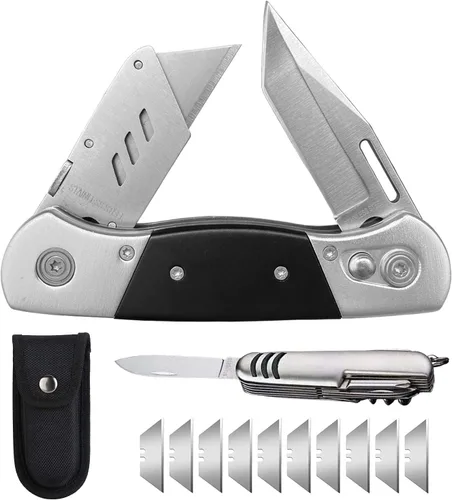 ¿Para qué sirve Folding Utility Knife with Sheath and 10 Razor Blades, Heavy Duty Box Cutter Knife with Dual Blades, Construction Knifes Electrician Knife for?