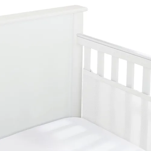 poliéster Importado 3MM DE MALLAZ CLÁSICA CON VALORACIÓN DE BLOQUEO DE LUZ DEL 85%: Construido a partir de malla de 3 mm con A.C.T. Tecnología de canal de aire para flujo de aire sin restricciones. 100% poliéster. Ribete de 2,54 cm en la parte superior e inferior. Lavable a máquina. AJUSTE PARA ESTILOS DE TAMAÑO COMPLETO CON UN COLCHÓN DE 52" x 28" (132 CM x 71 CM): Instale dos paneles de 11" x 58" (28 cm x 147 cm) para cubrir 2 lados. Se puede utilizar en estilos con 2 extremos sólidos o 1 extremo sólido, p. ej. una mesa para cambiar pañales adjunta. No utilizar con minicunas. Seguridad probada y confiable: de BreathableBaby, el forro de malla transpirable original con millones vendidos desde 2002. Probado de forma independiente para garantizar la seguridad para cumplir con la norma ASTM F1917 para ropa de cama infantil. No contiene productos químicos añadidos, retardantes de llama o formaldehído. Ayuda a mantener los brazos y las piernas de forma segura en el interior sin el riesgo de flujo de aire restringido: una sola capa de malla transpirable permite que el aire exhalado pase a través de la tela y mitiga los riesgos asociados con los "protectores de cuna" acolchados (prohibidos en los EE.UU. en 2022). FÁCIL DE INSTALAR: Se ajusta para que quede perfecto con gancho y bucle. Coloca el borde inferior de tela debajo del borde superior del colchón y asegura todos los cierres antes de usar. Consulta el manual de instrucciones y el video de instalación o ponte en contacto con Atención al Cliente para obtener ayuda.