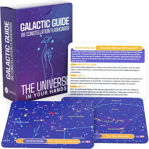 Briston Galactic Guide 88 tarjetas de constelación – Tarjetas de aprendizaje de astronomía para niños y adultos, juego de estudio de gráficos de