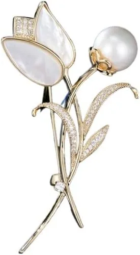 Broche elegante de flor de tulipán Moissnaite de oro de 14 quilates, broche de flor de perla con concha de perla natural, regalo de alta gama para