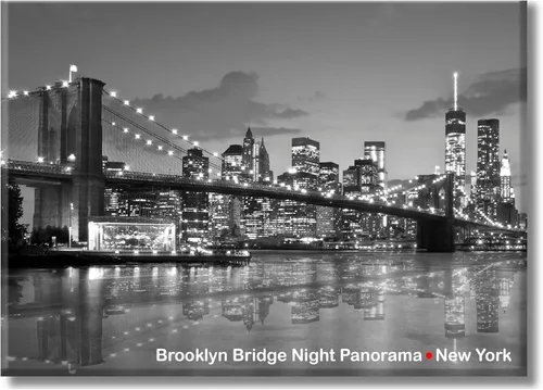 Brooklyn Bridge Night Reflection Panorama – Imán de recuerdo fotográfico de la ciudad de Nueva York, imán de metal para nevera de Nueva York,