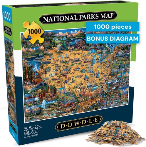 EXPERIENCIA DE PUZZLING: Realice un viaje por carretera sin pantalla a través de los Estados Unidos con un mapa lleno de puntos de referencia, vida silvestre y escenas inspiradas en parques en cada esquina. Este rompecabezas de 1000 piezas comienza divertido y colorido, luego se convierte en un desafío satisfactorio a medida que se construyen los detalles y texturas del mapa. DOWDLE MAP STYLE ART: Descubre la querida narración de Dowdle con colores brillantes, ilustraciones nítidas e innumerables mini momentos para detectar. El diseño del mapa de Parques Nacionales es un iniciador de conversación y una construcción gratificante para los rompecabezas que aman los viajes, la aventura y los temas al aire libre. Materiales reciclados de alta calidad: fabricado en los Estados Unidos con materiales reciclados y fabricado con tablero de rompecabezas premium para una sensación resistente y un gran ajuste. Disfruta de un manejo seguro, un montaje suave y un aspecto acabado que estarás orgulloso de compartir. Embalaje de papel de aluminio para regalo + póster de referencia: incluye un gran póster de referencia acentuado en papel de aluminio para ayudar a clasificar y localizar regiones rápidamente. La resistente caja de regalo con detalles de aluminio se ve premium en el estante y hace que envolver sea fácil para cumpleaños y vacaciones. APRENDIZAJE A TRAVÉS DEL JUEGO: Admite el pensamiento lógico, el reconocimiento de patrones y la habilidad de resolución de problemas mientras rompecabezas. El tamaño acabado es de 26.75 x 19.75 pulgadas, ideal para tableros de rompecabezas, tapetes y mesas de comedor.