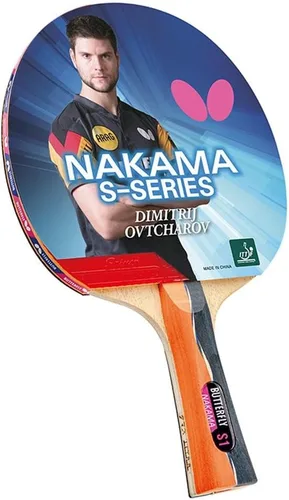 La Nakama S-1 es una pala de ping pong profesional que está hecha con capas de carbono en la madera y goma Sriver que te da la ventaja con giro extremo, velocidad y punto dulce. Las raquetas de tenis de mesa Butterfly son las raquetas preferidas por profesionales de todo el mundo. Esta pala de tenis de mesa Butterfly está ensamblada con la popular goma invertida Sriver de 0.075 in, que ofrece velocidad y giro extremos con el control suficiente para ayudarte a vencer a tu oponente. Las gomas son rojas y negras, por lo que es la Federación Internacional de Tenis de Mesa - ITTF aprobada para torneos. El mango tiene un diseño acampanado, que es más estrecho en la parte superior y más ancho en la parte inferior. Ofrece un agarre superior. La raqueta estilo shakehand con el mango acampanado de color naranja, gris y blanco la convierte en una paleta de tenis de mesa elegante y ergonómica. El diseño de mango acampanado ha sido la elección preferida de jugadores de todo el mundo. La raqueta de ping pong Nakama S-1 es para aquellos que desean aumentar su juego de ping pong y jugar como un jugador de tenis de mesa profesional. La raqueta Nakama S-1 está respaldada por Chuang Chih-Yuan. Es el campeón de las Grandes Finales del Tour Pro de la Federación Internacional de Tenis de Mesa 2002 de Taiwán. Dale potencia extra a tu juego de ping pong con la pala de ping pong Nakama S-1 de Butterfly Table Tennis.