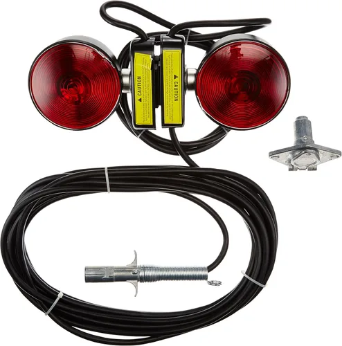 Obtén hasta una milla de visibilidad durante el remolque con el juego de luces de remolque resistentes de Buyers Products. Las bombillas incandescentes cumplen con los requisitos DOT, y la base de montaje magnético no rayará la carrocería de tu camioneta. En la práctica caja de almacenamiento de plástico se incluye un cable duradero de 30 pies con enchufe de resorte de cuatro polos que activa tu señal de giro, freno y luces traseras.