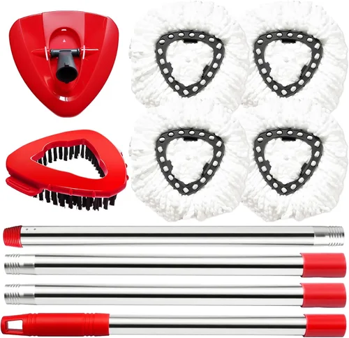 【Combinación perfecta】: el cabezal de reemplazo de la fregona, el mango de la fregona, la base de la fregona y el juego de cepillos de fregado base solo es compatible con el sistema de 2 tanques o cedro EasyWring 1. Nota: no es compatible con el sistema de 2 tanques RinseClean de cedro 【4 cabezales de repuesto de trapeador giratorio】: los reemplazos del cabezal de la fregona están hechos de 100% microfibra, absorbente, fácil de reemplazar, lavable a máquina Poste de trapeador ajustable de 30 a 58 pulgadas: el mango de repuesto para trapeador está hecho de acero inoxidable de alta calidad, fuerte y duradero. Viene con un mango de 4 secciones que se ajusta de 30 pulgadas a 58 pulgadas, no más agacharse, ahorrando tu espalda y cintura 【Fácil de instalar】: el cabezal/cepillo y la base de repuesto se unen, muy sólido; simplemente retira el cabezal sucio de la fregona y coloca el nuevo recambio de la fregona giratoria en la base de la fregona triangular, después de escuchar un "clic", significa que el reemplazo es exitoso Aplicaciones multiusos: adecuado para la limpieza profunda de superficies lisas como madera, azulejos, laminado, mármol y otros suelos duros sellados. Así como ventanas y coches. Se puede utilizar en seco o húmedo. El trapeador seco se utiliza para limpiar el cabello y el polvo. Trapeador húmedo para eliminar manchas. Gran opción para tus múltiples necesidades de limpieza El paquete incluye: 4 cabezales de repuesto para trapeador, 1 mango de trapeador, 1 base triangular para trapeador y 1 cepillo para trapeador. Si no estás contento, simplemente háznoslo saber y nuestro equipo profesional de servicio al cliente siempre estará encantado de ayudarlo
