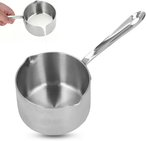 Uso amplio: la cacerola de acero inoxidable es perfecta para calentar leche, hacer jarabes, derretir mantequilla, queso, caramelo y chocolate, o recalentar pequeñas porciones de verduras, calentar sopas, salsa y sobras. Las sartenes pequeñas para estufa tienen amplios rangos de uso. Calentamiento rápido: este crisol de mantequilla de acero inoxidable tiene un aspecto clásico y un rendimiento profesional, una pequeña cacerola de acero inoxidable con boquilla de vertido puede calentar rápidamente y distribuir el calor de manera uniforme. Pequeña olla de acero inoxidable que te brinda comodidad. Fácil de colgar: hay un agujero en el extremo del mango de la cacerola con boquilla para colgar opcionalmente de los estantes de ollas para almacenamiento, la olla de hervir café de metal es conveniente y práctico, el calentador de chocolate ahorra espacio para su cocina. SEGURO DE INDUCCIÓN: La mini cacerola con boquilla de vertido lateral es conveniente de usar, la olla de leche de acero inoxidable es adecuada para estufas de inducción, gas o eléctricas. Las ollas de leche para estufa tienen un aspecto clásico y un rendimiento profesional. Diseño de doble boquilla: diseño de boquillas de doble vertido para uso a mano derecha e izquierda, la pequeña boquilla de vertido de la olla calentadora de mantequilla solo requiere un vertido menos apresurado, la sartén pequeña es fácil de usar.