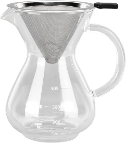 Cafetera de vidrio de 13.5fl oz, cafetera para verter sobre la cafetera con filtro de malla de acero inoxidable reutilizable (A)