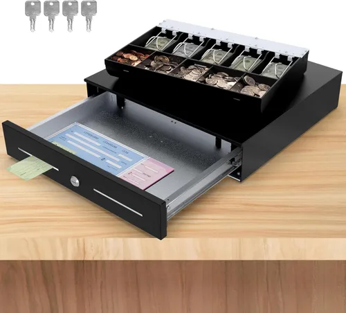 1,000,000 veces abierto: el cajón Beelta de 18 pulgadas para caja registradora está hecho de metal resistente, los rieles deslizantes con rodamientos de bolas proporcionan un funcionamiento más estable y duradero. Bandeja de efectivo extraíble de 5 billas/5 monedas: el cajón de efectivo está diseñado para el mercado estadounidense con caja de efectivo estándar de 5 billetes y 5 monedas. Ranuras dobles para grandes cheques y facturas sin abrir el cajón de la caja registradora. Conectividad y compatibilidad: se puede utilizar como un cajón de efectivo manual con llave o se conecta a una impresora de recibos de 24 V con cable RJ11/12 (funciona con la mayoría de las principales marcas de impresoras de recibos). Abierto electrónico y apertura con llave: nuestro cajón de efectivo tiene tres posiciones de bloqueo de llave, lo que significa que se puede abrir electrónicamente cuando está conectado a la impresora de recibos, o abrir la llave sin la impresora. Esta caja de efectivo también admite apertura de emergencia. Realmente resistente: el cajón de efectivo Beelta cuenta con una barra de refuerzo de acero oculta debajo de la carcasa, evitando que se doble incluso bajo un uso intensivo.
