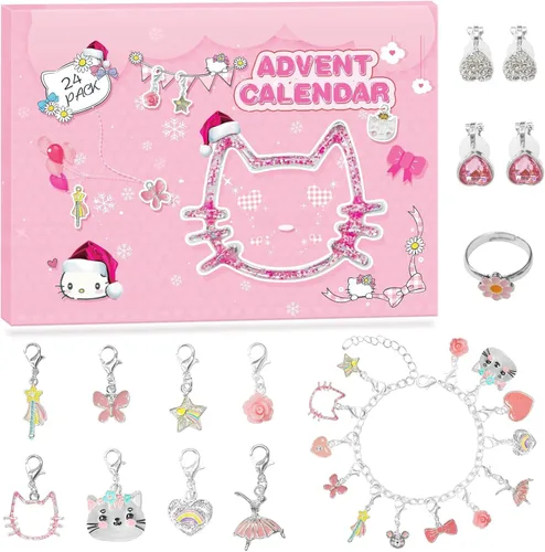 Calendario de Adviento 2025 Cuenta Regresiva de Navidad DIY Lindos Dijes de Gato Pulsera de Moda de Navidad con Pulseras Collar y 22 Dijes Únicos