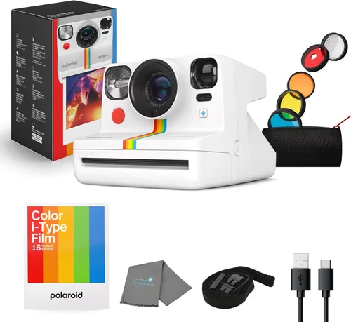 Cámara instantánea Now+ Gen 2, blanca, cámara de película Bluetooth Now Plus con kit de filtro de lente de 5 piezas y bolsa, película de cámara