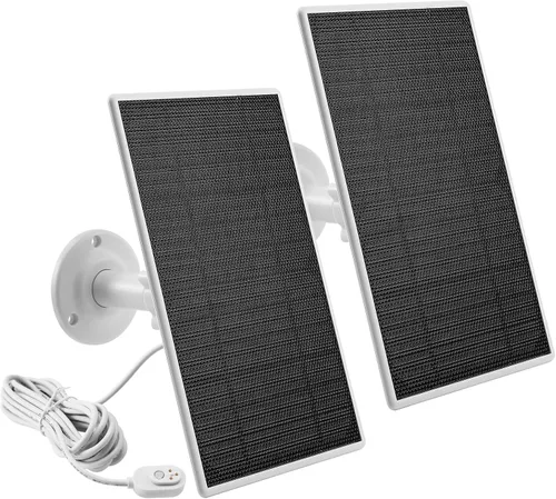 Compatible con: Arlo Pro4, Pro3, Floodlight, Pro 5S 2K, Ultra 2, Ultra Camera, no compatible con Arlo Pro/Pro2, Arlo Essential Spotlight, Arlo Go, Arlo Cam Fácil de usar: simplemente instala el panel solar arlo pro 4 de forma estable con tornillos y cara a la luz solar directa. El exclusivo soporte giratorio de 360° y un cable de 13.2 pies (13.1 ft) le dan la flexibilidad para maximizar la exposición a la luz solar. Potencia de carga rápida de 6V 4.5W, incluso en días lluviosos, carga continuamente tu cámara Arlo. Resistente al agua: nuestros paneles solares Arlo Cam están hechos de material de silicona monocristalino y marco resistente, que son impermeables y pueden soportar tormentas, viento fuerte y nieve pesada. Puedes instalarlos en cualquier lugar al aire libre Los paquetes incluyen: 2 paneles solares Arlo Cam, 2 cables de 13.1 pies, 2 soportes de montaje de 360 grados, 2 clips de cable circulares con clavo de acero, 2 paquetes de tornillos de montaje. 【Servicio al cliente】Ofrecemos reemplazo gratuito, reembolso y respuesta en línea las 24 horas. Si tiene alguna pregunta con nuestro panel solar Arlo, póngase en contacto conmigo.
