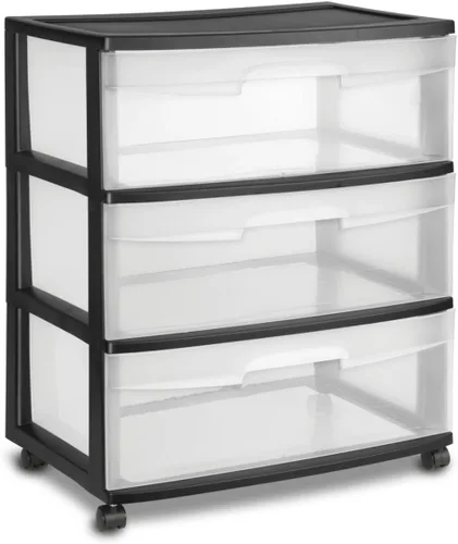 Transforma cualquier espacio con este versátil carrito de almacenamiento de 3 cajones con cajones extraíbles transparentes y un elegante marco negro. Perfecto para dormitorios, baños, salas de manualidades o espacios de dormitorio, este carrito mide 21 7/8 pulgadas de ancho, 15 1/4 pulgadas de profundidad y 24 pulgadas de alto. Los cajones transparentes facilitan la localización de los artículos mientras los mantienen perfectamente contenidos, y las asas integradas garantizan un acceso suave. Cada cajón incluye una función de tope para evitar la extracción accidental. Con generosas dimensiones de cajón interior de 19 1/8 x 13 1/4 x 7 pulgadas, hay mucho espacio para ropa, accesorios, suministros de manualidades o artículos esenciales de baño. Incluye las ruedas proporcionadas para crear una solución de almacenamiento móvil a una altura total de 25 5/8 pulgadas. Ya sea que se utilice como una cómoda independiente, mesita de noche o organizador de armario, este carrito de almacenamiento ayuda a mantener espacios libres de desorden mientras mantiene tus artículos fácilmente accesibles y organizados.