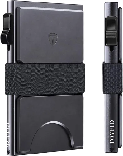 TOYFID Billetera delgada para hombre, cartera minimalista desplegable, billetera de metal, bloqueo RFID, con placa trasera expandible y banda para