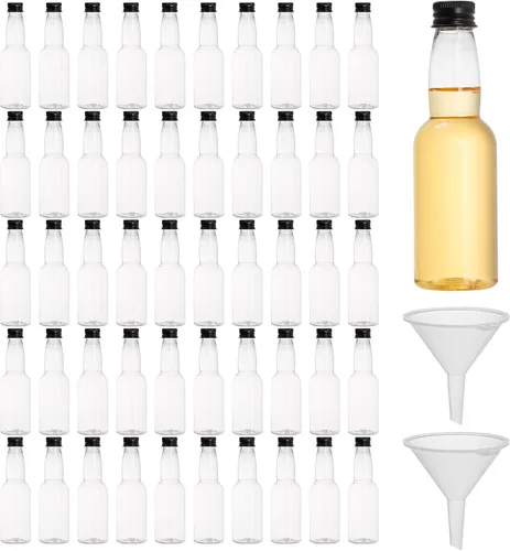 Incluye 50 mini botellas de licor con 2 embudos, hechas de plástico de grado alimenticio, sin BPA, grueso, duradero y reutilizable. Cada botella mide 5.1 x 0.62 pulgadas (alto x profundidad), con capacidad para 3.4 onzas líquidas. Cedilis Las botellas son definitivamente a prueba de fugas, las tapas se ajustan perfectamente a las botellas. Sello hermético para mantener tu precioso contenido sabe bien, y evitar que el licor se derrame y arruine tu bolso, maleta o mochila. El embudo en miniatura hace que sean más fáciles de llenar sin gotas ni residuos. Y el embudo tiene un pequeño mango para que lo sostengas, vertiendo el whisky, el vodka, la ginebra de sloe, la sambuca, el bourbon o incluso el tequila de manera constante. Las bonitas botellas son perfectas para baby shower, despedida de soltera y recuerdos de fiesta. Y son ideales para que hagas tu propio espíritu y compartirlo con tus amigos como regalos Llena con tu bebida favorita, vino, tequila, bola de fuego o almacena una pequeña cantidad de tamaño de viaje de tu loción favorita, salsa picante, vinagre balsámico o aderezo.