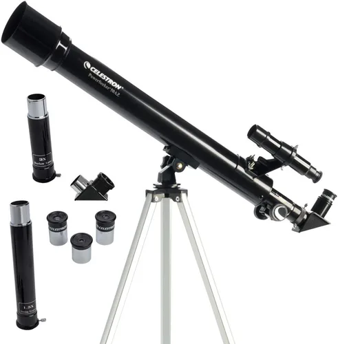 TELESCOPIO PERFECTO DE NIVEL DE ENTRADA: El Celestron PowerSeeker 50AZ es un telescopio potente y fácil de usar. Este telescopio refractor de 50mm ofrece suficiente capacidad de recolección de luz para ver planetas, los cráteres de la Luna y más. SOPORTE DE YOGO MANUAL: Navega por el cielo con facilidad. El soporte de yugo cuenta con una varilla de altitud de movimiento lento para una apuntación suave y precisa. Ajusta la varilla a la posición deseada, luego asegúrala fácilmente apretando la perilla cruzada. COMPACTO Y PORTÁTIL: El telescopio ideal para adultos y niños para usar juntos, el PowerSeeker es compacto, ligero y portátil. Llévalo a tu campamento favorito, un sitio de observación del cielo oscuro o simplemente al patio trasero. ACCESORIOS MÚLTIPLES: El telescopio Celestron PowerSeeker 50AZ viene con 4 oculares más una lente Barlow 3x para triplicar la potencia de cada uno. También recibirás una descarga gratuita de uno de los programas de software de astronomía mejor valorados. Garantía y soporte inmejorables: compra con confianza de Celestron, una marca líder de telescopios en California desde 1960. Tu compra incluye una garantía de 2 años en Estados Unidos y soporte ilimitado de nuestro equipo de expertos con sede en Estados Unidos.