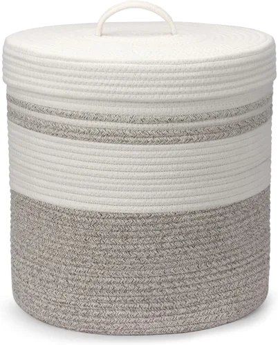 Las imágenes se han actualizado. Tamaño: 13.8 pulgadas de profundidad x 15.8 pulgadas de alto. Cesta de cuerda de algodón de tamaño mediano, lavable y plegable para dormitorios, lavandería y más. Decorativo y versátil: Material natural puro que mejora cualquier espacio - Solución de almacenamiento para ropa, juguetes o mantas. Diseño funcional: esta cesta alta con tapa mantiene el desorden a raya, desde la ropa hasta los juguetes, ideal también para baños. Fácil almacenamiento: plegable y espaciosa, esta cesta tejida con tapa ofrece estilo y comodidad en un solo paquete. Nota: La cesta de lavandería es plegable para el transporte. Llenarlo con ropa lo ayudará a recuperar su forma rápidamente. Planchar es una gran idea para quitar las arrugas.