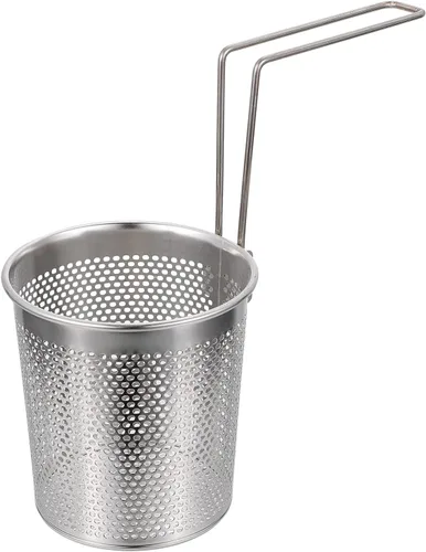 Cesta redonda de acero inoxidable para freír chips franceses de malla de alambre para freír fideos con asa, herramienta de cocción de patatas