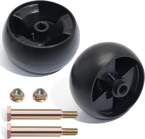 El paquete incluye: 2 ruedas de calibre de plataforma de cortacéspedes, 2 pernos y 2 tuercas de seguridad. Diámetro de la rueda: 5", ancho: 2-3/8", agujero central: 1/2". Tamaño de la rosca de la tuerca: 3-5/8". Adecuado para la mayoría de los estantes estándar de 42" 46" 48" 50" 52" 54" MATERIAL DE ALTA CALIDAD: Las ruedas de la plataforma de corte CheeMuii están hechas de polipropileno de alta calidad, con exquisita artesanía. Que están construidos sólidamente, con banda de rodadura lisa, antifricción, impermeables, resistentes al envejecimiento, resistentes a altas temperaturas y con una larga vida útil PIEZA OEM REEMPLAZABLE: Nuestras ruedas de cubierta de cortadora de césped reemplazan a MTD 734-04155; reemplaza a Cub Cadet 734-04155; reemplaza a Toro 112-0677, 72-025, 210-275; reemplaza a Stens 210-275; reemplaza a Oregon 72-025; reemplaza a Troy Bilt 938-3056 MODELO DE CORTE DE RELACIÓN COMPATIBLE: Las ruedas de calibre de cubierta de 5" compatibles con MTD 12533GC CGT5426 CLT42G CLT42H CLT46CVT CSLT5424 CYT4220 CYT4220SE CYT4622SE CYT5023SE GT2754KH GT5024 GT5025 GT5426 GT5427 LT4216 LT542H P91GS P91GT Q62GP Q626P Q81GH Q816K Q94GK Q92GP RZT42 RZT50 RZT54 V90GS V91GS YT4218 YT4220 YT4220SE YT4622SE YT542K YT542KH YT942KH YT946KH YT950KH ZHD-L60 ZT42 ZT50 ZT54 ZT-L42 ZT-L42KH ZT-L50 ZT-L50KH ZT-L54 ZT-S42 ZT-S42KH ZT-S46 ZT-S46KH ZT-S54 ZT-S54KH MODELO DE CORTADORA COMPATIBLE: Las ruedas de calibre de cubierta de 5" son compatibles con Cub Cadet GT1054 GT1554 GT1554VT GT2042 GT2050 GT2148 GT2542 GT2544 GT2550 GTX1054 i1042 i1046 i1050 LGT1050 LGT1054 LGTX1050 LGTX1054 LT1040 LT1042 LT1045 LT1046 LT1050 LT42 LTX1040 LTX1042 LTX1042KH LTX1042KW LTX1045 LTX1046 LTX1046KW LTX1046M LTX1046VT LTX1050KH LTX1050KW LTX1050VT RZT42 RZT50 RZT50KH RZT50KW RZT50VT RZT54 RZT54KW RZT-L42 RZT-L46 RZT-L50 RZT-L54 RZT-S42 RZT-S46 RZT-S50 RZT-S54 SLT1550 SLT1554 SLTX1050 SLTX1054 SLTX1054VT XT1-GT50 XT1-LT42 XT2-LX46 MODELO DE CORTE COMPATIBLE: Las ruedas de calibre de plataforma de 5" compatibles con Craftsman G8200 G8300 G8400 G8600 LT2000 LT2500 PGT9000 PYT9000 T1000 T1200 T1300 T1400 T1500 T1600 T1700 T1800 T1900 T3100 T7800 T8000 T8200 T8400 T8600 Z6000 Z6400 Z6600 Z6900 Z8200 Z8400 Z8600 ZS6500 ZS6700 ZTL7000 ZTL8000; También se ajusta a MTD/ White Outdoor GT954 GT954H LT2000 LT5000 LT950H ZT42 ZT4200 ZT50 ZT5000 ZT54, y MTD/ Yard Man RZT-42 RZT-50 RZT-54 MODELO DE CORTACÉSPED COMPATIBLE: Las ruedas de calibre de cubierta de 5 pulgadas son compatibles con Troy Bilt TB1942 TB2142 TB2246 TB2350 TB2450 TB2454 TB2654 TB42 TB46, TB1942 TB2142 TB2246 TB2350 TB2450 TB2454 TB2654 TB42 TB46, Big Red Gt50, Big Red Gt54, Horse 42, Horse 46, Mustang 42 Xp, Mustang 46 Xp, Mustang 50 Xp, Mustang 54 Xp, Mustang Pivot 46, Mustang Xp 46, Mustang Xp 50, Mustang Xp 54, Mustang Xp 60, Mustang Xp Pivot S46, Mustang Xp Pivot S54, Mustang Z42, Mustang Z46, Mustang Z54