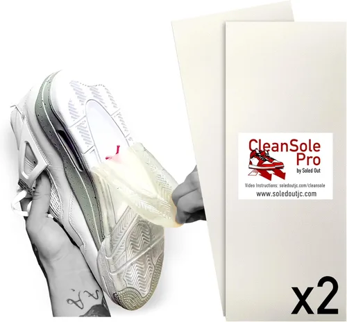 CleanSole Pro by Soled Out, the ultimate shoe sole protector that effortlessly applies like a breeze, preserving your shoe's value while providing unparalleled traction. With its thicker and non-permanent design, it's like a screen protector for your sneakers, shielding them from dirt and wear without compromising their style -- -- As with any sole protector, the grip is suitable for casual wear. This is the ultimate. Compatible with: nearly every type of sneaker, luxury and casual, as well as dress shoes, including "red bottom shoes" Cleansole Pro sneaker protectors not only provide ultimate protection against heel drag, discoloration, and yellowing of your soles but also assist in preserving the value of your shoes for future resale. Our innovative protectors, featuring built-in traction and easy application in just minutes, can be tailored to fit most shoe sizes. When you're rocking your favorite kicks, your sole focus should be on looking fresh. Count on Cleansole Pro to enhance the longevity of your shoe soles and maintain their value for potential resale opportunities.
