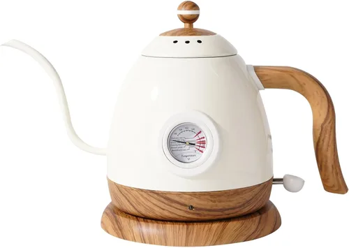 CloudHand Hervidor eléctrico de cuello de cisne con termómetro, hervidor de agua caliente de acero inoxidable, tetera para café y té, apagado