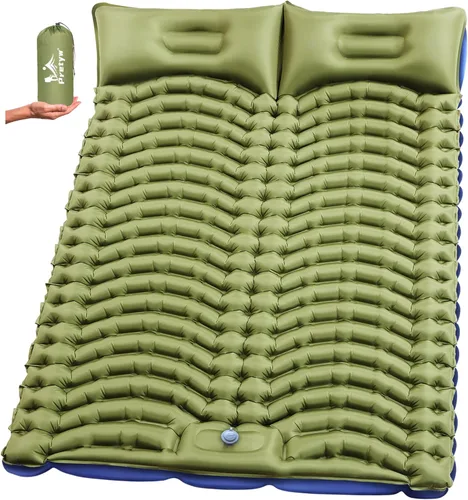 Soporte mejorado y soporte para dormir de 4 pulgadas de grosor: la colchoneta de dormir Pretyw para acampar está hecha con materiales duraderos para exteriores, perfecta para todo tipo de clima. Mide 79 x 55 pulgadas y se infla hasta 4 pulgadas de grosor, proporciona un amplio espacio y un fuerte apoyo para dos personas. La almohada integrada añade comodidad y conveniencia, asegurando una gran noche de sueño sin tocar el suelo. 【Bomba de pie rápida para inflar y desinflado de 1 segundo】No necesita manos, boca o bomba para inflar nuestra almohadilla de dormir autoinflable para acampar. Simplemente pisa la bomba de pie integrada y se inflará completamente en 1-3 minutos. Además, las dos válvulas de doble capa en la almohada del colchón de aire evitan eficazmente las fugas de aire y permiten un desinflado rápido. Nota: Asegúrese de cerrar las dos válvulas en la parte posterior de la almohada antes de inflar. 【Esterilla de camping resistente y cómoda】Nuestra almohadilla para dormir está fabricada con nailon ultragrueso de 40D con un diseño de TPU multicapa, lo que garantiza una excelente durabilidad y rendimiento impermeable. No se rasgará, incluso en terrenos difíciles. Limpiar el colchón inflable de camping es fácil: simplemente límpialo con un paño húmedo si se pone polvoriento o sucio. Además, el diseño ergonómico de ondas de alivio de presión proporciona la máxima comodidad, ya sea que estés acostado de espaldas, de lado o de estómago. Ultraligero y portátil: este colchón de aire para campamento tiene un diseño compacto y se pliega fácilmente en una bolsa de transporte de 10 x 5.9 pulgadas. Pesando solo 3 libras, se puede guardar sin esfuerzo en una mochila o maleta, sin añadir carga extra a tu viaje. Ideal para senderismo, camping, ir de mochilero, viajes, escalada y otras actividades al aire libre, así como para huéspedes que se quedan a dormir en casa. 【Compra sin riesgos】 Pretyw está aquí para servirte. Queremos que estés completamente satisfecho con esta colchoneta para dormir de camping. Tenerlo traerá más alegría a tus aventuras. Estamos comprometidos a proporcionar la mejor experiencia para nuestros clientes. Abraza tu viaje con Pretyw, donde cada aventura comienza con comodidad.
