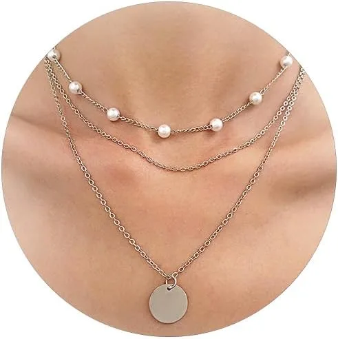 Collares en capas para mujer, collar de cadena de perlas, collar con dije de moneda, gargantilla de capas bohemias, collares ajustables para regalos de niñas