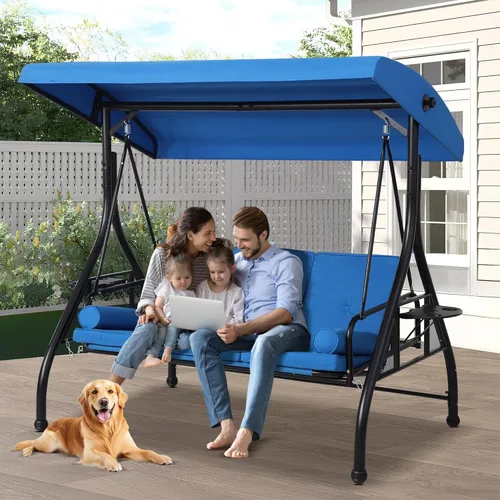 Columpios de porche para exteriores de 3 asientos con toldo ajustable, banco de columpio para patio con soporte, cama columpio resistente con