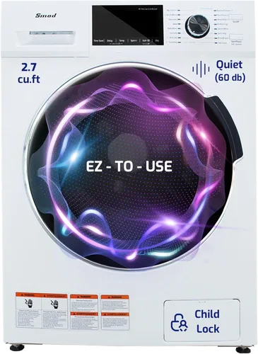Combinación de lavadora y secadora que ahorra espacio: esta lavadora y secadora compacta de 24 pulgadas combina funciones de lavado y secado, perfecto para hogares pequeños o apartamentos, maximizando su espacio limitado. Dimensiones (Ancho x Profundidad x Altura): 23.4 x 25.6 x 33.5 pulgadas Combo de lavadora y secadora todo en uno: esta lavadora y secadora ofrece una pantalla LED con 16 ciclos, bloqueo para niños, capacidad de 26 libras, carga frontal. Diseñado con una velocidad máxima de centrifugado de 1400 RPM y un fácil funcionamiento con botón, simplifica y acelera las tareas de lavandería Combinación de lavadora y secadora de carga frontal que ahorra tiempo: dado que no hay necesidad de transferir la ropa de la lavadora a una secadora separada, estas lavadora y secadora 2 en 1 pueden ahorrar tiempo y trabajo, lo que hace que todo el proceso de lavado sea más eficiente Lavadora secadora compacta con función de retardo: ajuste la lavadora para que arranque hasta 24 horas después, lo que le permite lavar la ropa cuando esté fuera o durante las horas pico. Esta característica ofrece flexibilidad y puede ayudar a gestionar los costos de electricidad Precauciones de instalación para combinación lavadora-secadora: asegúrese de un espacio de 0.984 in en todos los lados para reducir el ruido. RETIRAR LOS PERNOS DE TRANSPORTE Y ESPACIADORES: 1) Aflojar y retirar con una llave. 2) Cubra los agujeros con tapones. 3) Guardar pernos para uso futuro