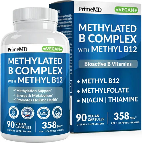 Complejo B metilado con metilfolato y B12 metilcobalamina 1000 mcg - Multivitamínico metilado para energía, función cerebral y bienestar - Complejo