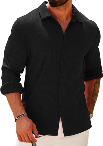 COOFANDY Camisas de vestir de ajuste atlético para hombre, camisas de punto acanalado con textura y botones